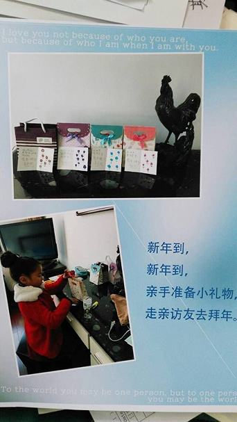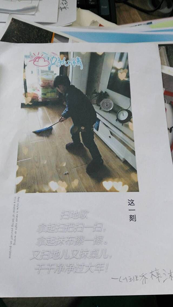 2017 年寒假,对于我的孩子们来说是小学生活的第一个假期,假期的作业布置上我花费了很多心思。除了假期复习我们学过的《日有所诵》以外,我们还可以做些什么呢?学以致用,孩子们通过半学期的诵读,已经找到了儿歌童谣的节奏,有了一定的语感,于是我要求孩子们在完成“学会整理”“我和家人办年货”“走亲访友”等作业中,拍下图片,有兴趣的同学可以模仿《日有所诵》中歌谣的节奏在图片下写童诗歌谣,训练孩子们在生活中自觉仿写儿歌。