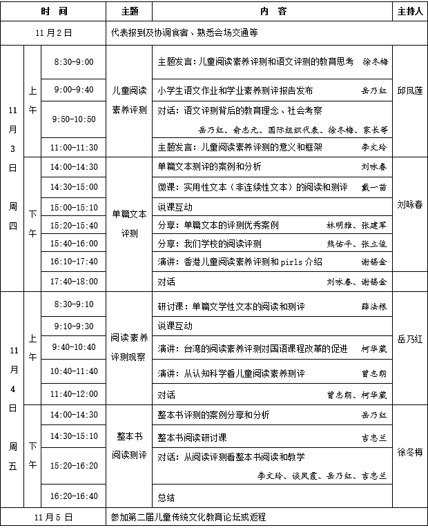 原台湾“教育部长”,“中央研究院”院士曾志朗先生,原台湾“国教院院长”,中央大学学习与教学研究所所长柯华葳教授将与您分享台湾阅读素养评测对促进阅读课程改革的经验。香港大学教育学院副院长、全球学生阅读能力进展研究香港特区研究代表谢锡金教授将为您介绍香港儿童阅读素养评测与国际阅读素养进步研究(PIRLS)。美国传腾大学教授兼博士项目负责人李文玲教授将对比中美两国阅读测评研究现状,做儿童阅读素养评测意义与框架的主题发言。