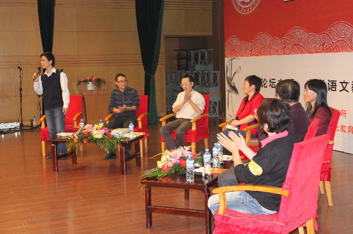 浓厚的学术氛围,发人深省的质疑,激烈的思想碰撞,踊跃的现场互动。七位专家开放互动,各抒己见,就建设什么样的母语课堂、小语教材中传统文学的文本选择发表了自己的看法,并比较了大陆和台湾小语教材中的文本注释问题,蒋军晶老师提出了自己的见解——必须原汁原味,才能更具文学美和真实美。
