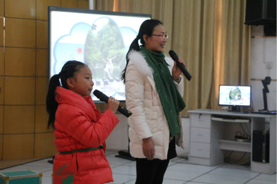 下午是孩子和老师们的报告会。读书报告会上,孩子们轮流站上讲台,绘声绘色向在场的同学、老师和家长们讲述了自己的阅读故事,有的讲述了全家痴迷读书顾不上吃饭的趣事,有的讲述了广泛涉猎各类书籍的探索与求知之旅,有的则讲述了如何走进了作家丹 布朗的推理小说世界。亲子阅读故事的讲述环节,妈妈和女儿以家庭的阅读历史述说亲情的感动和成长的快乐。