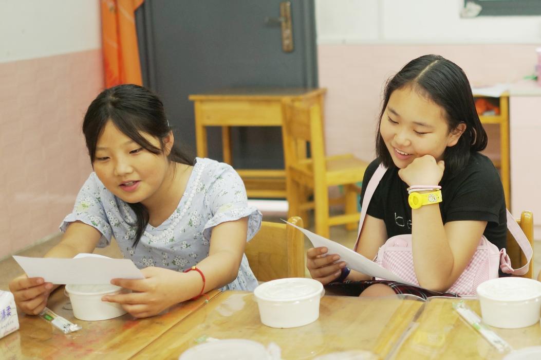 在这里度过了愉快半天的小营员们也渐渐建立起了一份归属感,看着张钰洋小营员和王梓涵小营员丈量着我们分发的T恤,脸上满意的神情,小编的心理也是美美的。