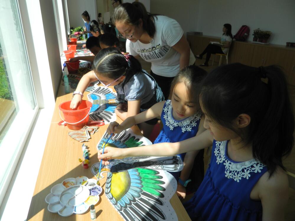 孩子们跃跃欲试,纷纷想要亲手制作。紧接着,在书房潘老师的带领下,孩子们开始彩绘、扎制小鹰风筝,用艺术和手作的方式表现鹰飞戾天的雄奇力量,体验中国传统手工艺者的智慧与巧思。