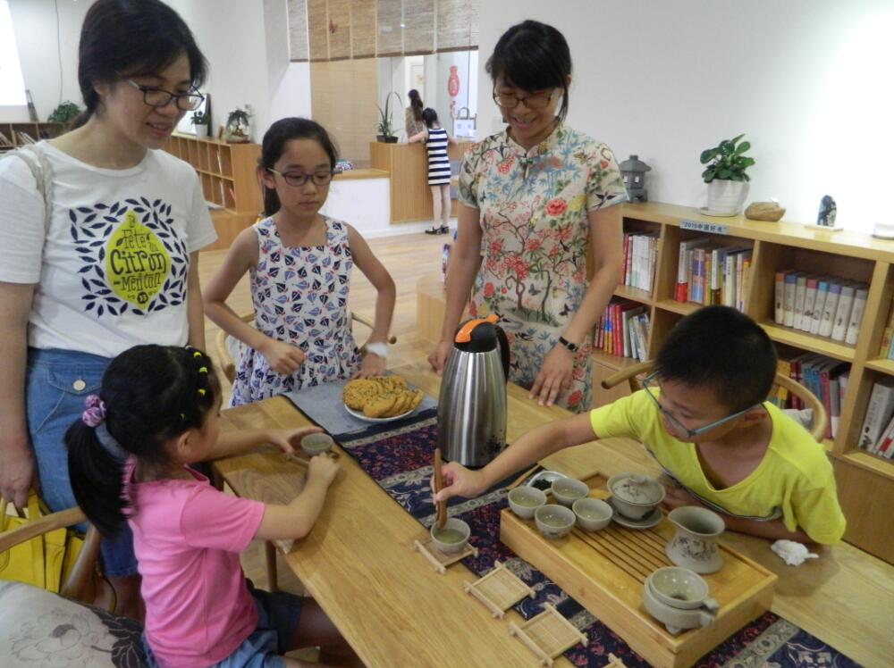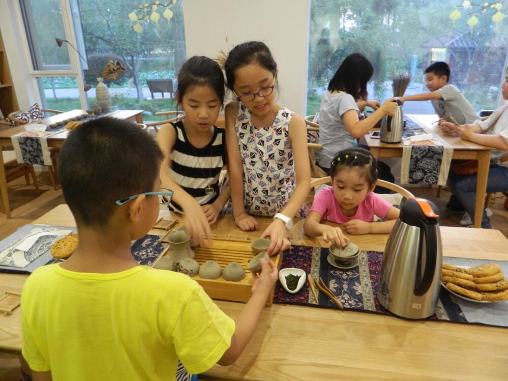 处暑傍晚,气温渐凉。书房的老师早已备好处暑茶恭候孩子和家长们。魏老师邀请我们共赏茶道共品茶饮之后,就有不少孩子迫不及待想要尝试操练茶艺。在魏老师的指导和家长们的鼓励下,孩子们演示得有模有样呢!