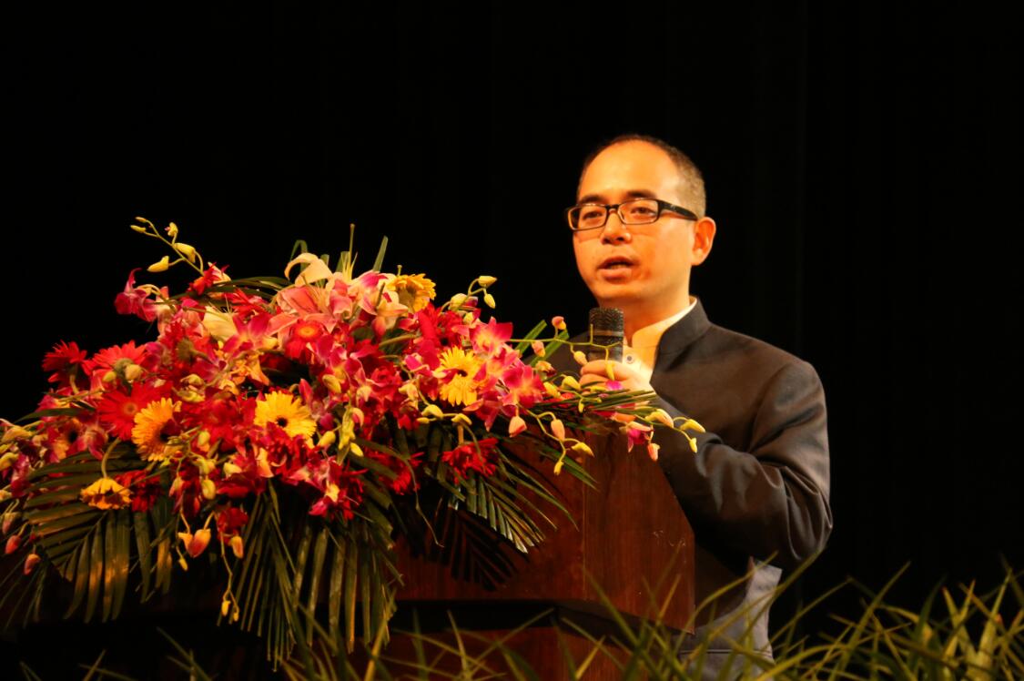 ▲四川广元天立国际学校的舒凯老师在第二届儿童传统文化教育论坛上发言