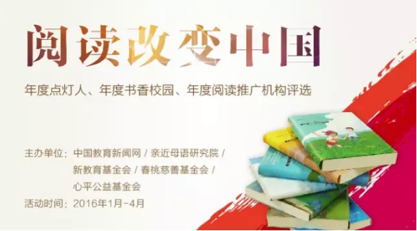 1月18日,亲近母语联合中国教育新闻网、新教育基金会、春桃慈善基金会和心平公益基金会联合启动了2016“阅读改变中国”年度评选活动。4月20日,在第十二届中国儿童阅读论坛上举行了隆重的颁奖典礼,评选出了胡红梅、曹亚男、徐洁、彭志辉等10位年度点灯人,广东省深圳市罗湖区百仕达小学、四川省成都市金牛区人民北路小学校、上海市闵行区航华第二小学、河南省焦作市修武县第二实验中学和山西省运城市稷山县蔡村中心校5所年度书香校园,深圳卫宁读写障碍服务中心、悠贝亲子馆、《阅读‧梦飞翔》文化关怀慈善基金、海峡儿童阅读研究中心4家年度阅读推广机构/年度关注机构。