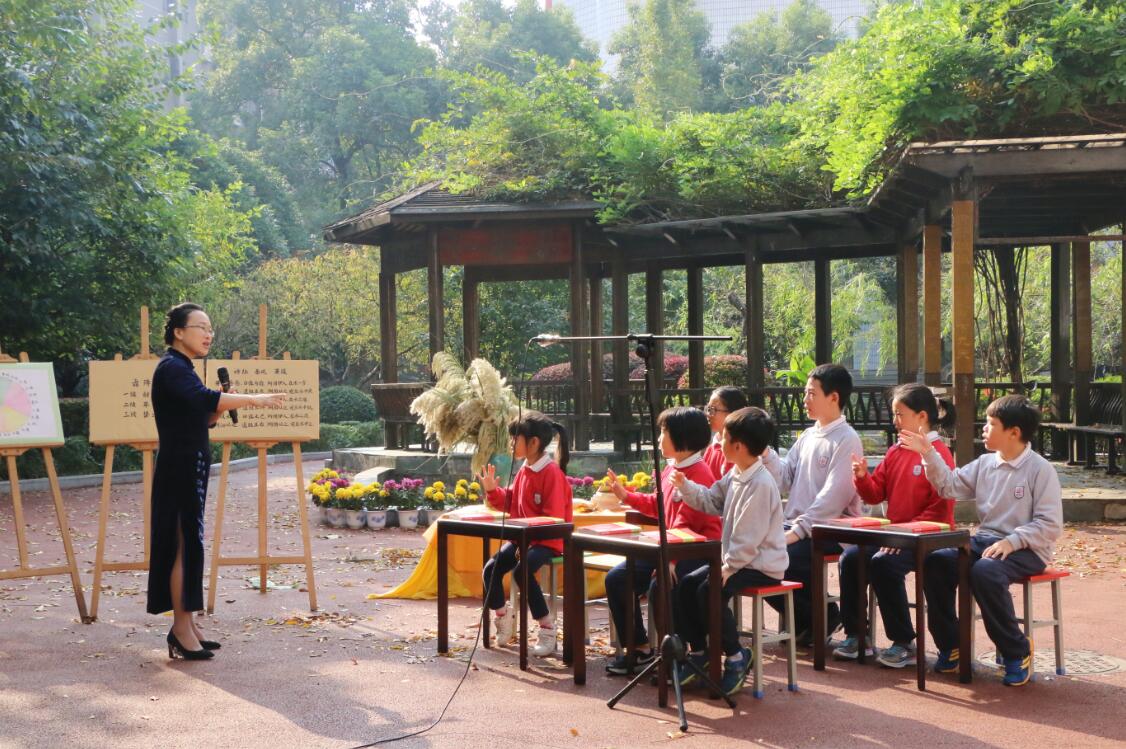 深秋时节的育才学校,梧桐落叶,桂子飘香,石榴满枝头。朱爱朝老师的二十四节气课就从秋天的校园中的自然景色讲起。