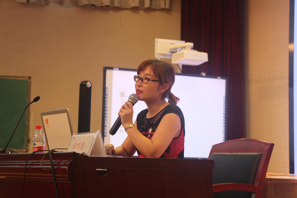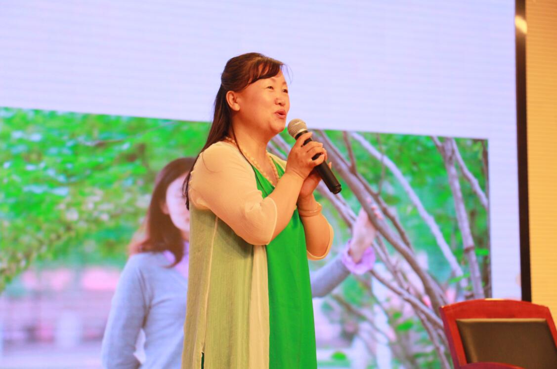 孔晓艳老师身着蓝色印花旗袍,看起来是那么地温婉大气。接过徐老师手中的话筒,开始主持今天的活动。