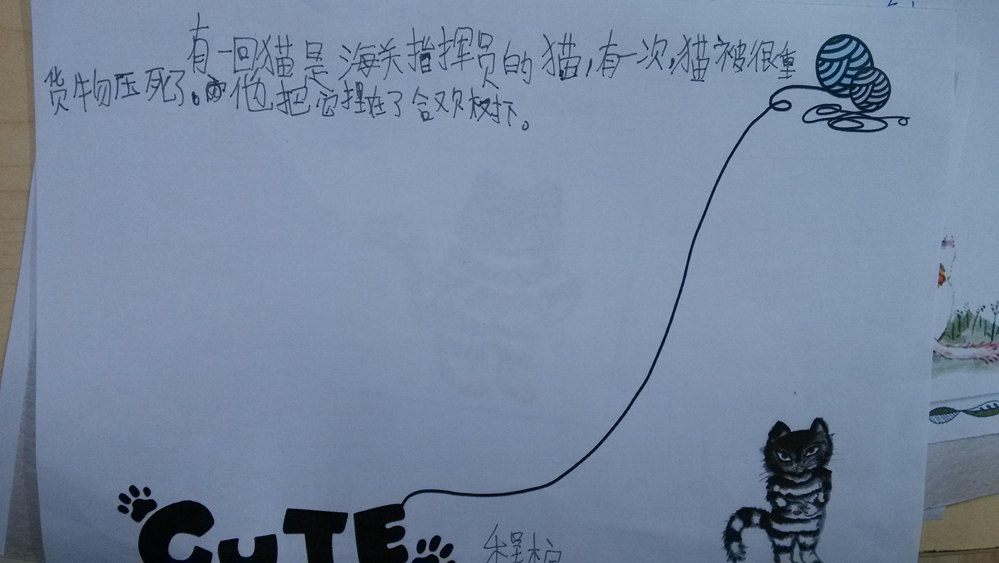 心怡是个非常有爱心的姑娘,在她的故事中猫与种花人是相互喜欢的,猫每天在花园间生活,想必也是十分快乐的。关于猫的死因,有些蹊跷啊,猫误食了化肥,这个结局让我们的猫显得有些愚笨,怎么会把化肥当成猫食呢?猫被埋葬在玫瑰花地里,这看上去有点凄美的感觉,但是啊这样就满足了么?这样就死而无憾了么?请将更多的情感赋予我们的猫吧!另:“猫”这个字,是左右结构的,不是上下结构的。