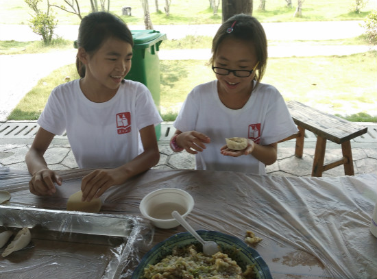 今天中午的午餐完全自助,营员们有的生火,有的拾柴,有的包饺子,干得热火朝天,特别兴奋。有人营员包的饺子奇形怪状,有的营员拾的柴火很多……不一会儿,饺子就出锅啦!营员们嚷着要吃自己做的饺子。“自己动手,丰衣足食”,吃着自己的劳动成果,别提有多高兴啦。
