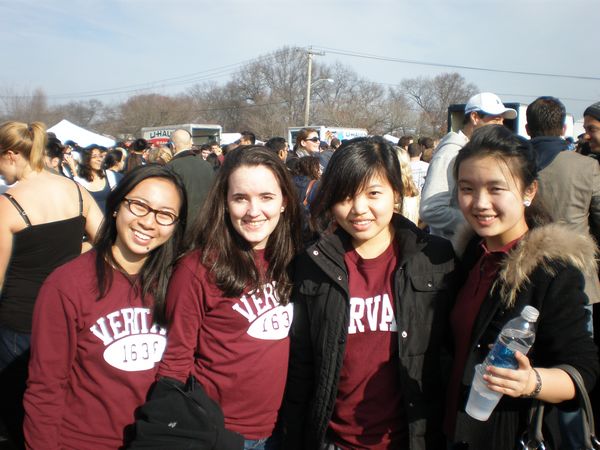 就读哈佛的第二届毕业生易菲菲(右一)参加哈佛耶鲁橄榄球赛
