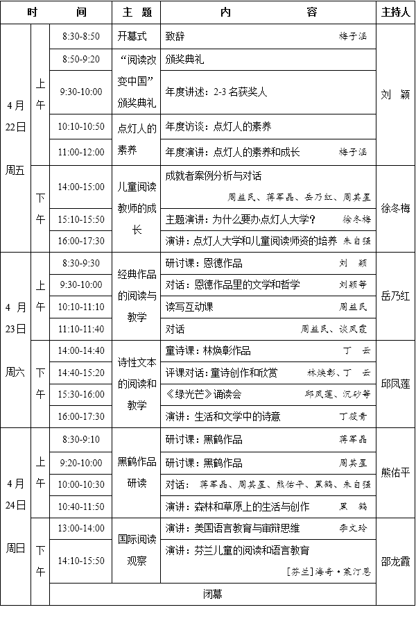 教育和生活应该是浪漫的,诗意的,著名动物小说作家黑鹤将讲述他在森林、草地和动物在一起的生活和创作,《绿光芒》诵读会欢迎您的参与,台湾著名诗人林焕彰老师将和您现场互动,丁筱青老师将为您分享文学、教育和生活中的诗意。