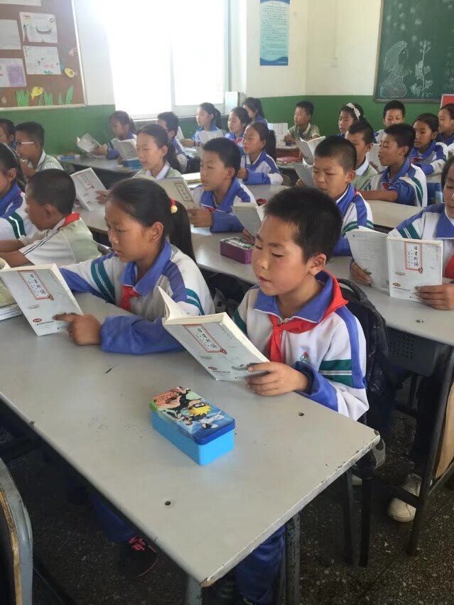 带着一年级的孩子读了一年的日有所诵,写了一年的通讲记录后,我于2015年7月在河南栾川县参加了第三届种子教师暑期研习营,在那里,我见到了那个一直只是在书中看到名字的人——薜瑞萍老师!当时的激动简直无法形容,她带领我们一起读,她一句,我们一句,我的目光一直追随着她,从来没有一场培训能让人那么振奋,那么印象深刻,薜老师的诵读和讲解让我从另一个层面理解了日有所诵编排的内容。随后,孔晓艳老师亲自带着我们磨课,一天时间内,从一年级到六年级,每一册我们都要选择一个单元进行通讲,尽管已经有了一年的经验,但当真正接受培训,身处那个场中,面对孔老师专家级的点评时,我还是被触动了!仿佛又回到了起点,重新审视走过的一年历程,并纵观这六册书的编排,我重新认识了日有所诵,对它的感情更增进了一层!当回到学校,回到课堂的时候,我面对的是一群五年级的农村孩子,我要在新的学校里支教一年,我身边没有了一起前行的同事,这里的领导也不要求做,似乎要与日有所诵告别一年了。但与学生相见的第一个早上,我,在黑板上抄下了第一首儿童诗,《树叶的香味》,我带着他们读,他们跟着我读,适逢九月初,窗外天高云淡,凉风习习,校园中的树叶沙沙作响。“孩子们,你们闻到了树叶的香味了吗?”陌生的校园,陌生的孩子,不同的面孔,此时,是日有所诵中的小诗拉进了我们的距离,孩子们看老师的目光渐渐温暖。随后几天,孩子们的书里都会夹上一片树叶,每个晨间,诵读的声音从我们的教室传出!“孩子们,每一片树叶仿佛在对我们述说着什么?”你看看我,我看看你,光笑不说。好吧,老师已经看到了你们不一样的眼神,不一样的表情,这就可以了!我为这一班五年级的孩子选择了四年级的日有所诵,他们前四年的阅读量太少,四年级中的沙与沫精选对他们而言,真得很难,在我通讲的时候,没人提问,我提问也没人回答。他们永远让我最满意的是读的声音特别宏亮,特别整齐。这就够了!一个星期读一个新的单元,我开始是抄在黑板上,后来建立了班级微信群,就拍照发群里,让他们有空抄,随后慢慢的班里的孩子人手一本,这里虽是农村学校,但孩子们的生活条件还是很好的,一旦知道了阅读的重要性,感受到了孩子的进步,家长们是非常支持的!从周一到周五,每天早上都是班长在组织诵读,我走进教室时,声音已经非常有节奏,非常整齐,我不忍心打扰,与他们一起捧书而读,或忍不住拿出手机录一段,拍几张。还有一点让我欣喜的是,同是一个单元,每读到周三的时候,从他们读的声音里总能听出一些不一样的感觉,没那么生硬了,没那么空洞了,好像更多的是一份自然和融合,而我也会在这一天,适时地再带入些新的解读,哪怕只是我的单方面讲解,没有回应,我让他们在一周的最后两天用心去消化,然后表现在声音里的又是一翻不同。每天中午排路队的时候,我们班的孩子齐声背着日有所诵里的内容走出校园,引来其他班孩子们好奇的眼神。当我用吟诵的方法带他们去读每单元的两首古诗时,孩子们也知道了平声仄声入声,也学会了打手势,慢慢地也能从声音的变化中感受诗的意境。我们的作文不再只有教材上规定的内容,我们会在读日有所诵时进行仿写,续写,创编。我鼓励孩子们把写的诗投在校报及《乡村少儿》杂志上,看到自己的文字变成了铅字,孩子们别提有多么开心了!还记得期末考试临近的日子,其他班都在加紧复习,做卷子,讲题。而我们班的早读依旧,课间还会穿插一些诵读,最让我感慨的是孩子们一起读论语的情景,每个人都读得是那么投入,我几次录制,刘倩老师还在暑期培训营上播放了我们班诵读的视频。