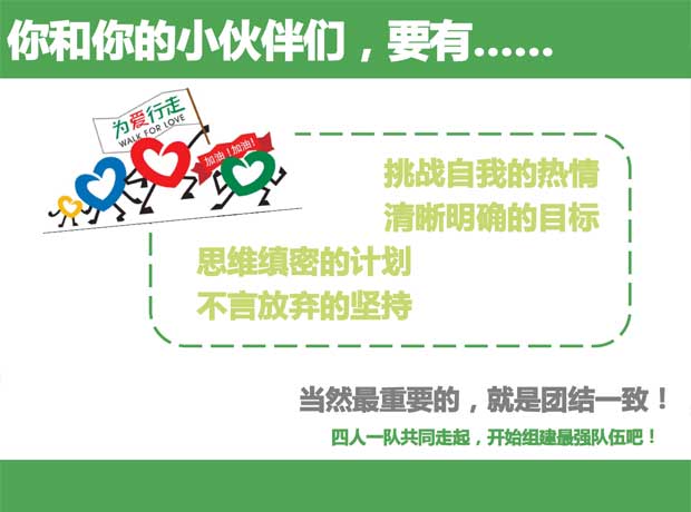 报名成功后,无论募款任务或徒步行走,请从一而终,坚持到底,万勿轻言放弃。
