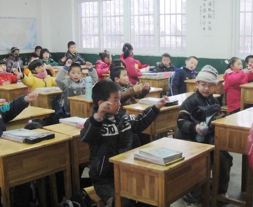 孩子们举手发言,起来给全班同学大声朗读《企鹅寄冰》。其他同学用手指或铅笔指着文章。不时的,孩子们还笑一阵。大家很喜欢这个故事。