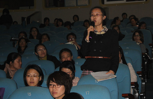 朱老师幽默地回答说,通过一堂课让孩子们就喜欢上文言文是不可能的,因为一见钟情也是不多的。另外,朱老师也说小学生的文学课堂主要要解决的是把它读懂,把它读好的问题。