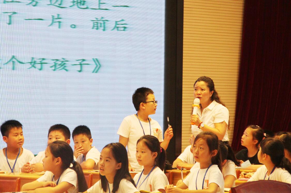 没有一点点防备,小营员们今早参与了一次别开生面的作文公开课。从平时在讲台下仔细听课的乖孩子,他们变成了众人的焦点,展示自己的语言天赋。带领孩子们走上舞台中心的是全国示范儿童文学研究会、全国中小学作文教学名师,苹果树下校长伍苹老师。苹果老师的课上的生动又活泼,小编发自内心为她点赞!谁说作文课就一定枯燥又无趣。