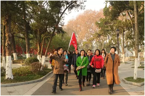 上午阳光正暖,大家在樱苑前面宽阔的草坪上合影留念。返回途中恰与林安梧先生、徐冬梅老师、杨爱萍老师相遇,遂以樱苑为背景合影一张。