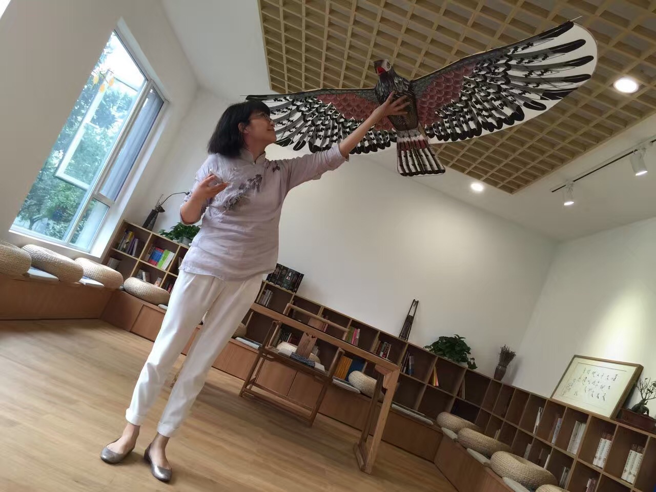 讨论完老鹰的故事,魏老师展示了盘鹰风筝。看,这传统手工扎制的盘鹰风筝是不是非常霸气!