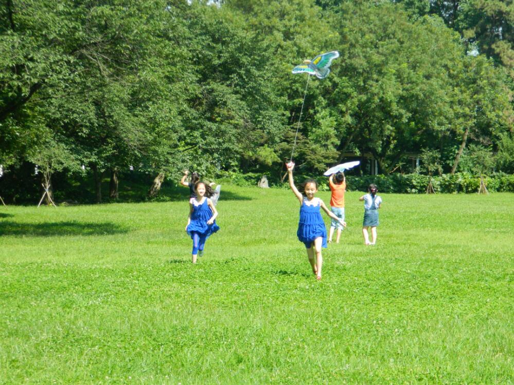 费时良久,终成佳品。孩子们立即托着风筝跑到书房门外的青青草地,奔跑,放飞……
