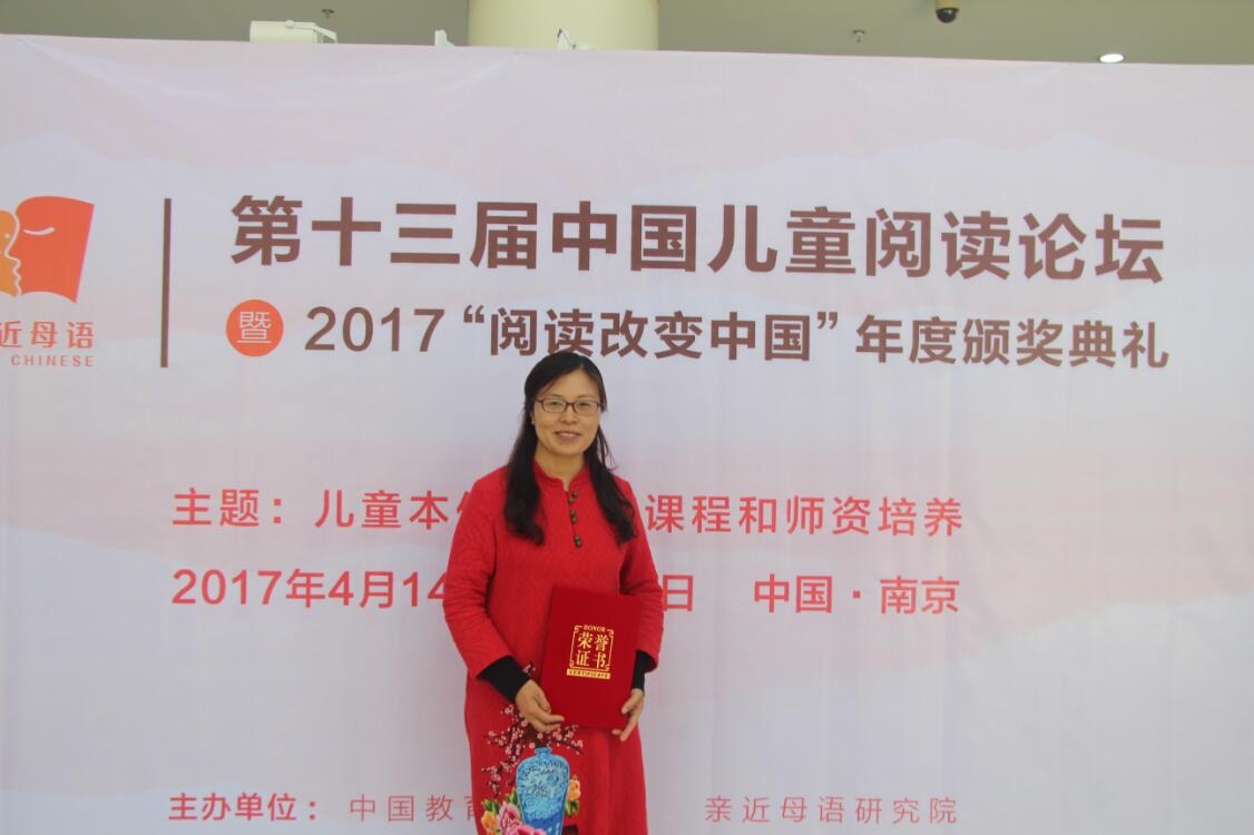 ▲崔秀俊老师获2017“阅读改变中国”年度点灯人