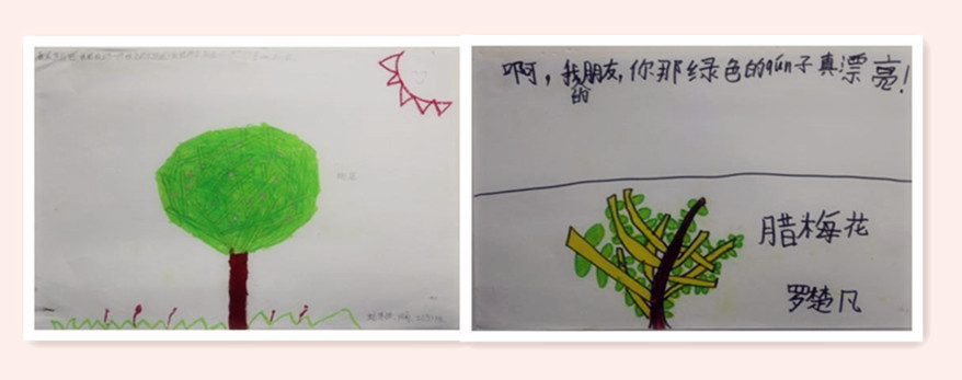 细致的观察里,呈现出孩子与自然的连接,越来越牢固。正是这样的连接,让孩子能感受到、觉察到海棠的美,并在叶和花的变化里,充满欢欣与喜悦。与同一种植物一同呼吸,一同走过四季,让一棵树,长进一个孩子的生命里。