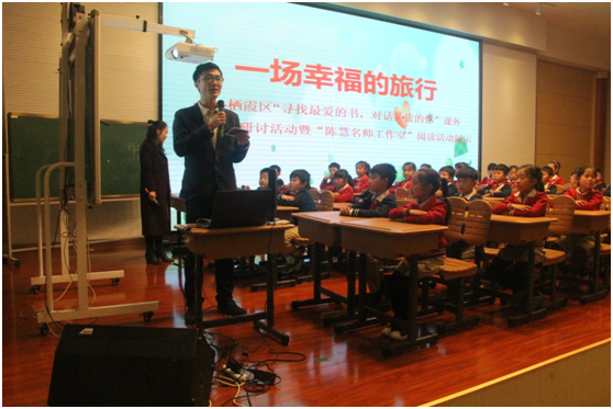 4月6日,栖霞区“寻找最爱的书,对话共读的你”课外阅读教学研讨活动暨“陈慧名师工作室”阅读活动展示在附中仙小学北苑演奏厅举行,区教师发展中心周荣婷主任,亲近母语研究院执行院长、省特级教师岳乃红,附中仙小胡彧书记,省特级教师陈慧老师也出席本次活动。栖霞区各小学中高年级语文骨干教师、2015年和2016年工作的语文新教师、附中仙小全体语文教师参加了此次教研展示活动。
