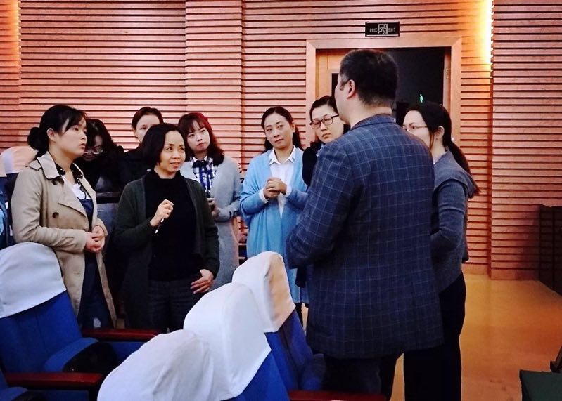 最后,余耀老师和该校老师们分享了《诵读课程的意义》。期间,还带领众位老师进行抑扬顿挫地诵读。他告诉老师们,多阅读儿童作品,走进儿童的世界,这样才能做到从儿童出发,做好诵读课程。而身体力行地朗诵和吟诵,是教师实施诵读课程教学的关键。