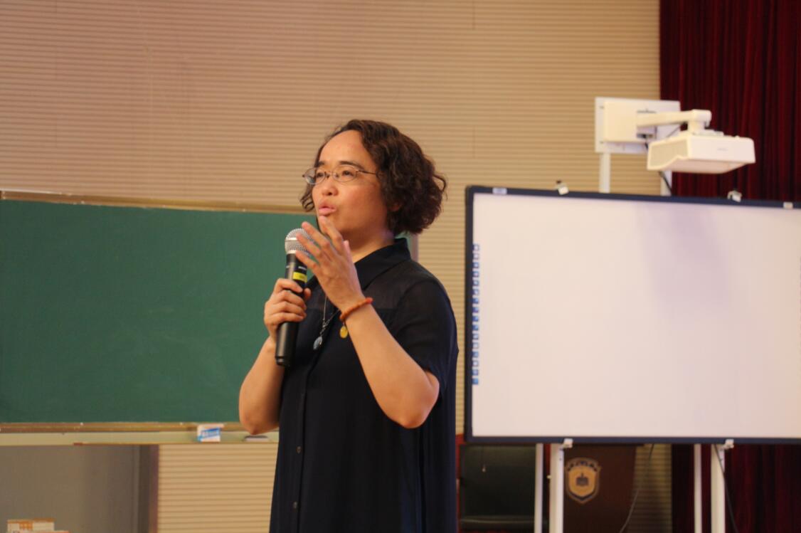 孔晓艳老师身着蓝色印花旗袍,看起来是那么地温婉大气。接过徐老师手中的话筒,开始主持今天的活动。