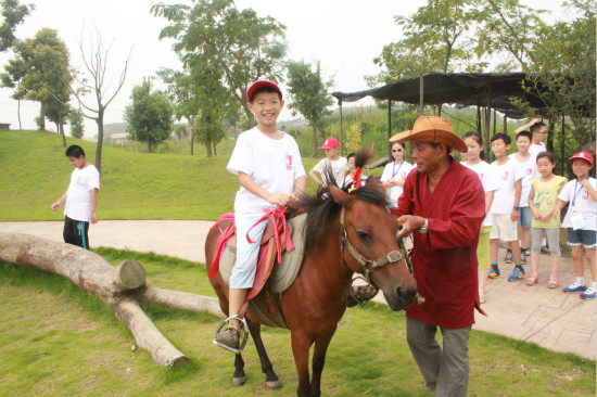 我来学骑射之骑马篇——三国人物常见的是马上大将,小营员也来学一学吧!不过,安全起见,孩子们在骑师的保护下体验,只可惜不能自由驰骋啦。但是骑在马上的样子好开心呢。